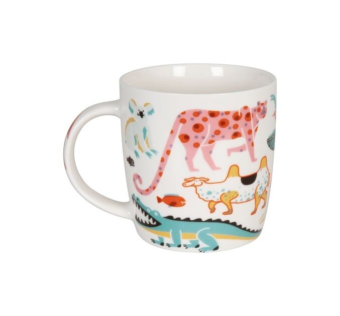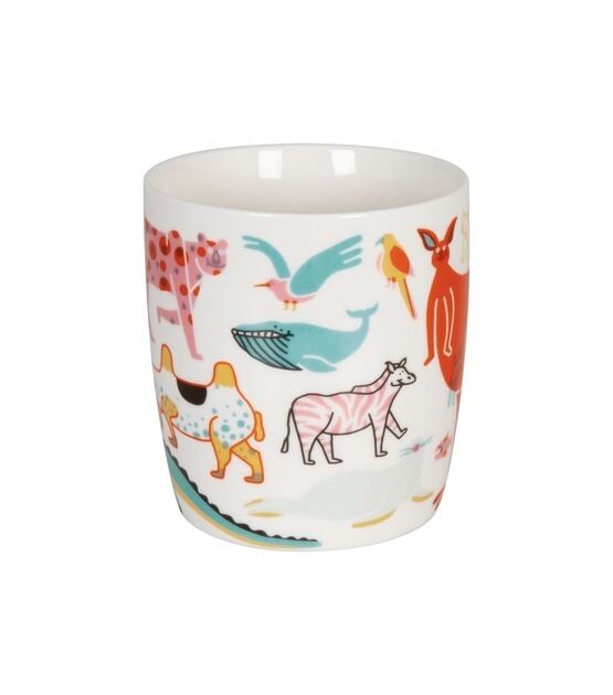 ポップな動物たちやしっかりと描かれた動物たちのマグカップ。